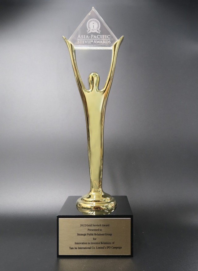 (Hong Kong, 15 September 2022) – Tam Jai International Co. Limited (“TJI” or the “Company”, and together with its subsidiaries, the “Group”; HKEX stock code: 2217), a leading and renowned mixian-specialised fast-casual restaurant chain, has received notable recognitions for its exceptional investor relations efforts demonstrated during its IPO campaign, with the winning of the Gold Stevie® Award for Innovation in Investor Relations at the 2022 Asia-Pacific Stevie® Awards, and the Best IR Company for an IPO at the HKIRA 8th IR Awards 2022.