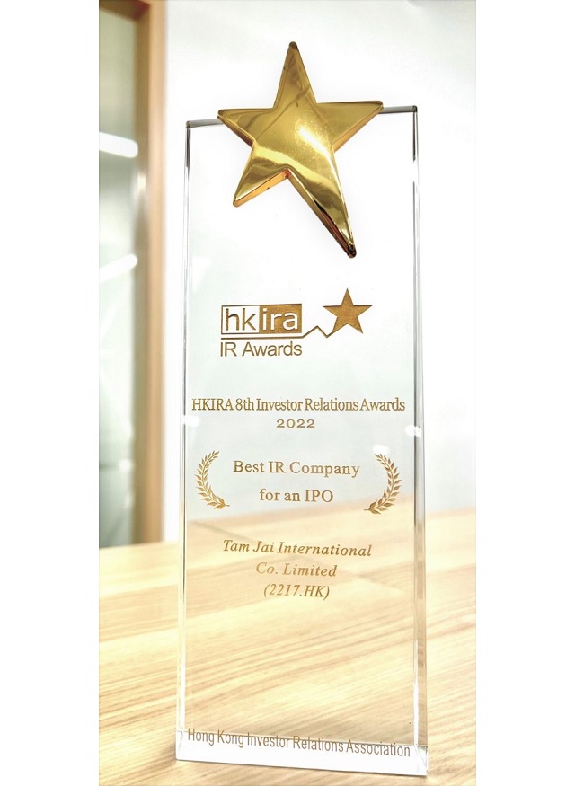 Mr. Daren Lau, Chairman, Executive Director and Chief Executive Officer of Tam Jai International, said, “We are delighted that our IPO campaign, underpinned by innovative marketing initiatives, as well as effective communication of investment proposition and use of communication channels, has attracted keen interest and favourable response from the market, earning us these two prestigious awards from the business and investment community. Acknowledging that investor relations efforts are an important pillar of good corporate governance, we have been committed to maintaining close communication with our stakeholders through various channels to ensure transparency and timeliness in information dissemination. Looking ahead, we will continue to implement best practices in our investor relations work, aiming to create long-term and sustainable returns for our shareholders.”